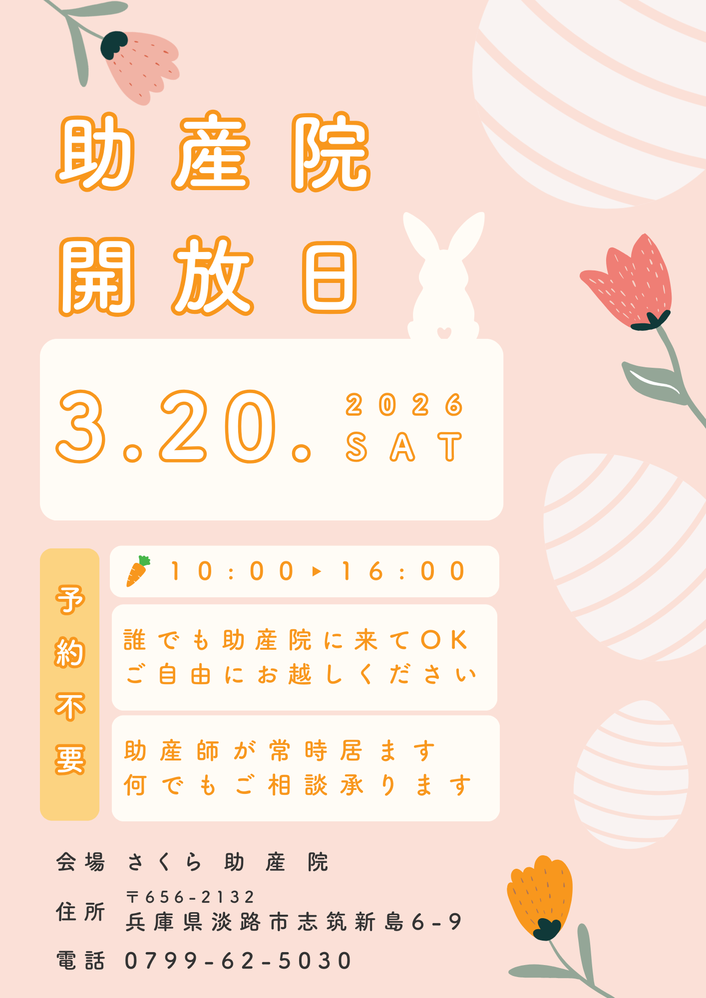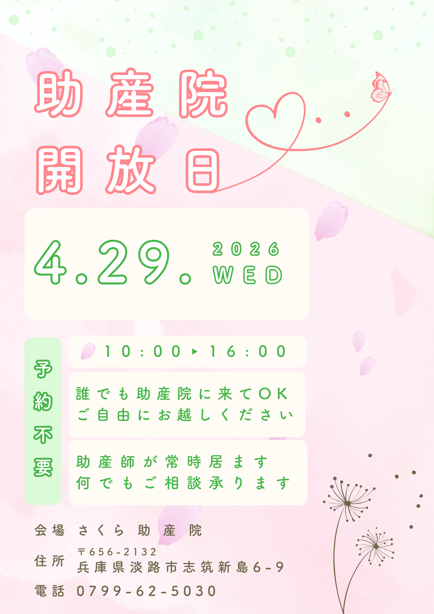 助産師がお産の補助をしたり、妊産婦や新生児に保健の指導をしたりすることを目的としているのが助産院です。「さくら助産院」は、淡路島内でお産ができる医療機関がたった1つという島内の課題に対して、安心して出産・育児にのぞめるまちづくりに貢献するために、2022年4月の有床助産院としてオープンいたしました。